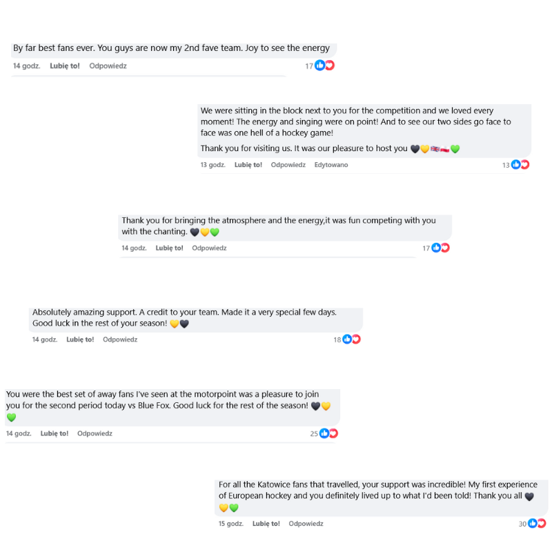 – Dziękujemy za dostarczenie tej niesamowitej energii kibiców. To była frajda rywalizować z Wami na lodzie i trybunach – pisze w komentarzu jeden z użytkowników.